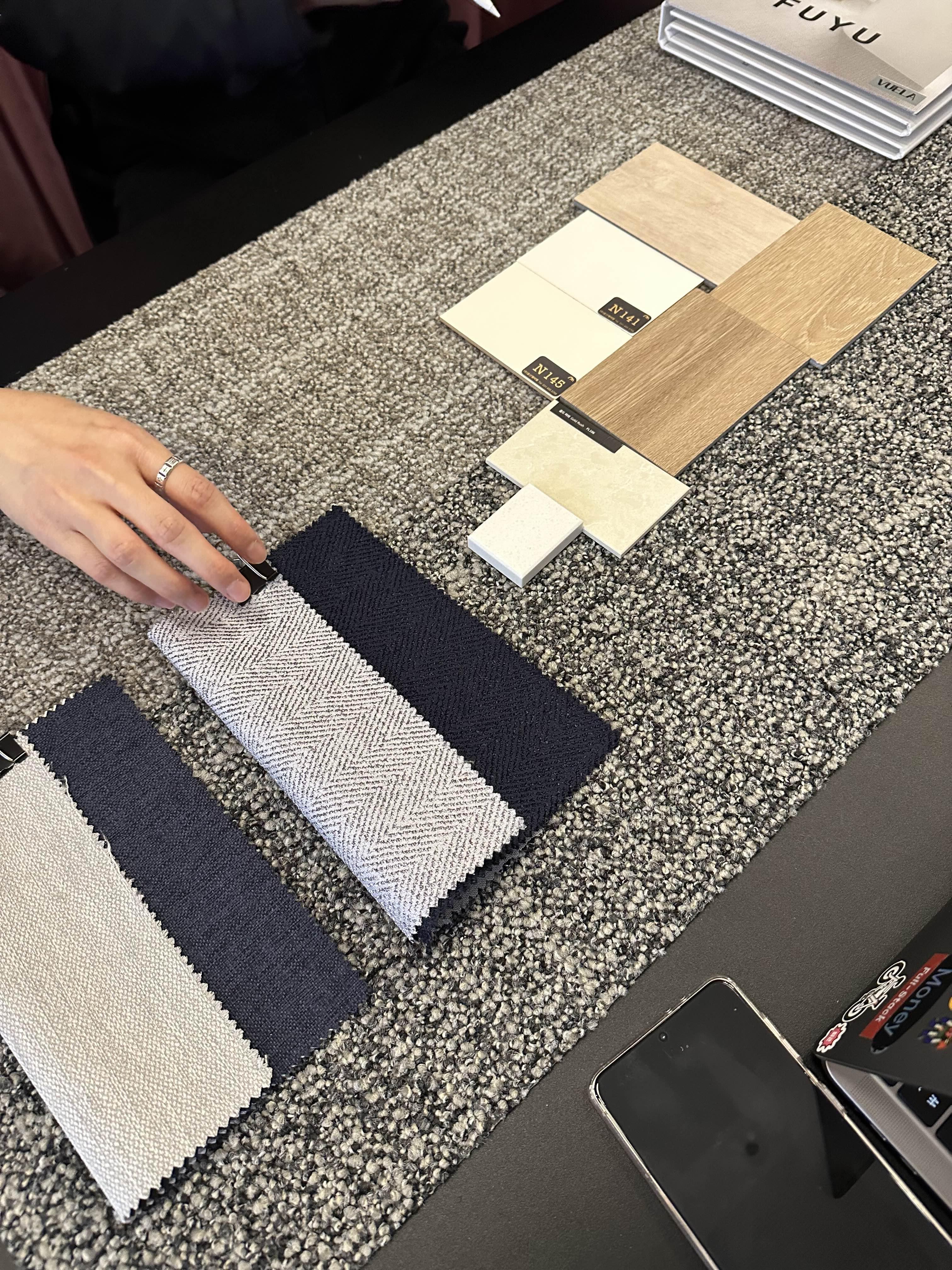 그리고 대략적인 컨셉을 정한 후에는 천정 노출 여부, 조명 밝기, 바닥 원목과 카페트 컬러와 원단, 매거진랙의 크기, 라운지 테이블과 소파의 모양 등등을 신중히 고르며, 구석구석 우리의 필요와 취향을 반영하고자 노력했어요. (●'◡'●)