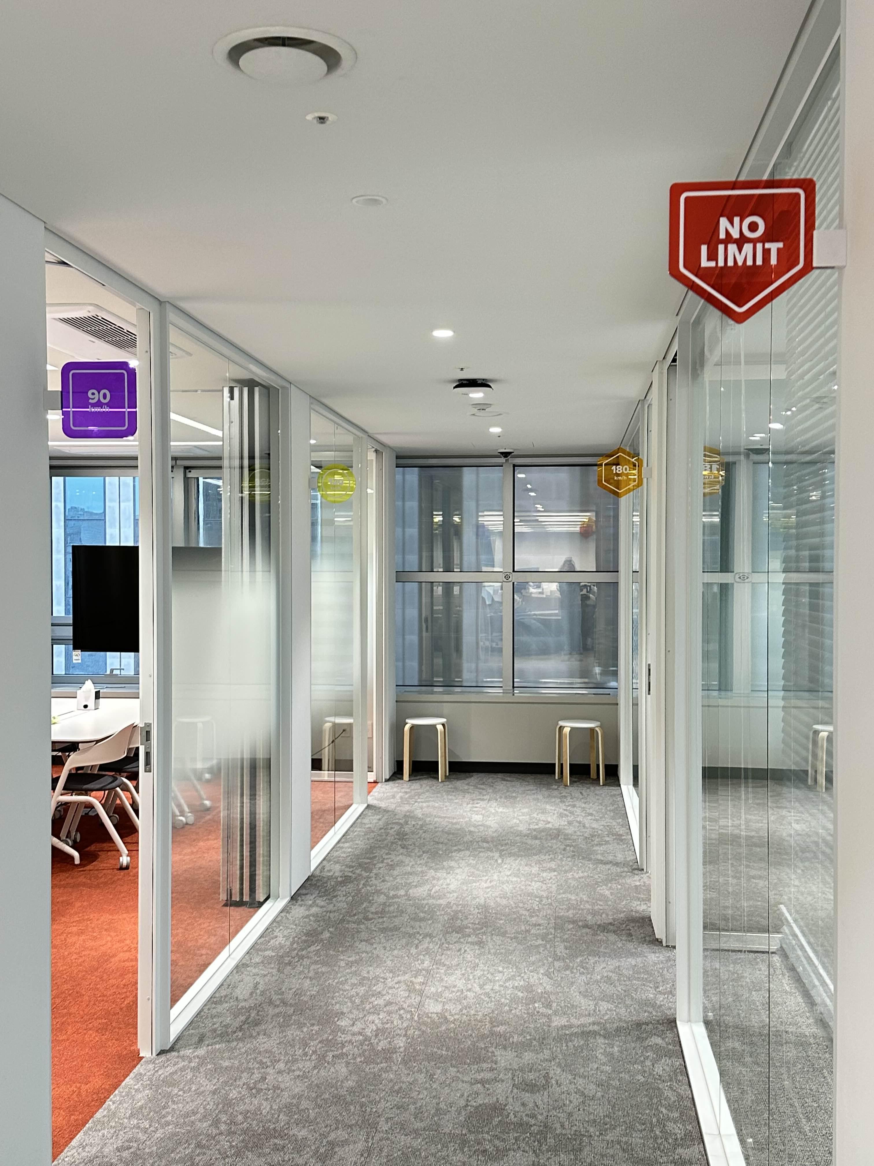 이러한 중의적 의미를 반영하여, 머핀 랩에 있는 6개 회의실의 이름은 "30km/h, 60km/h, 90km/h, 120km/h, 180km/h, No Limit"으로 지었답니다. 긴급 안건에 대한 회의는 180km/h에서, 장기 계획에 대한 회의는 30km/h에서 하자는 재밌는 아이디어도 함께했어요!