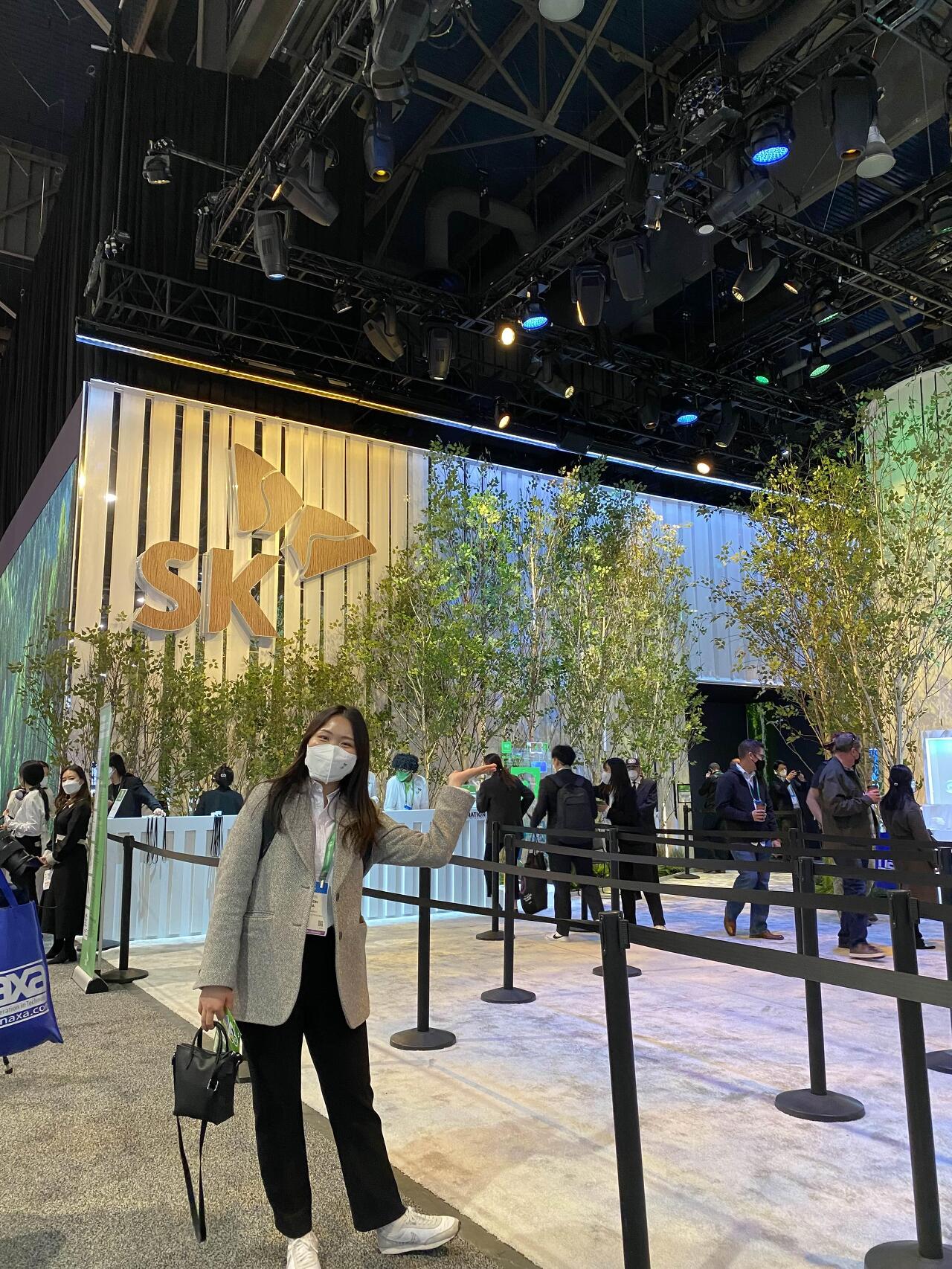 나무를 콘셉트로 꾸며진 외부 전시관에는 SK이노베이션의 전기차 및 배터리 사업, SK하이닉스의 친환경 반도체 생산 공정 등을 위해 각 SK그룹사가 협력사와 '함께' 나아가는 과정에 대해 설명되어 있었습니다.
