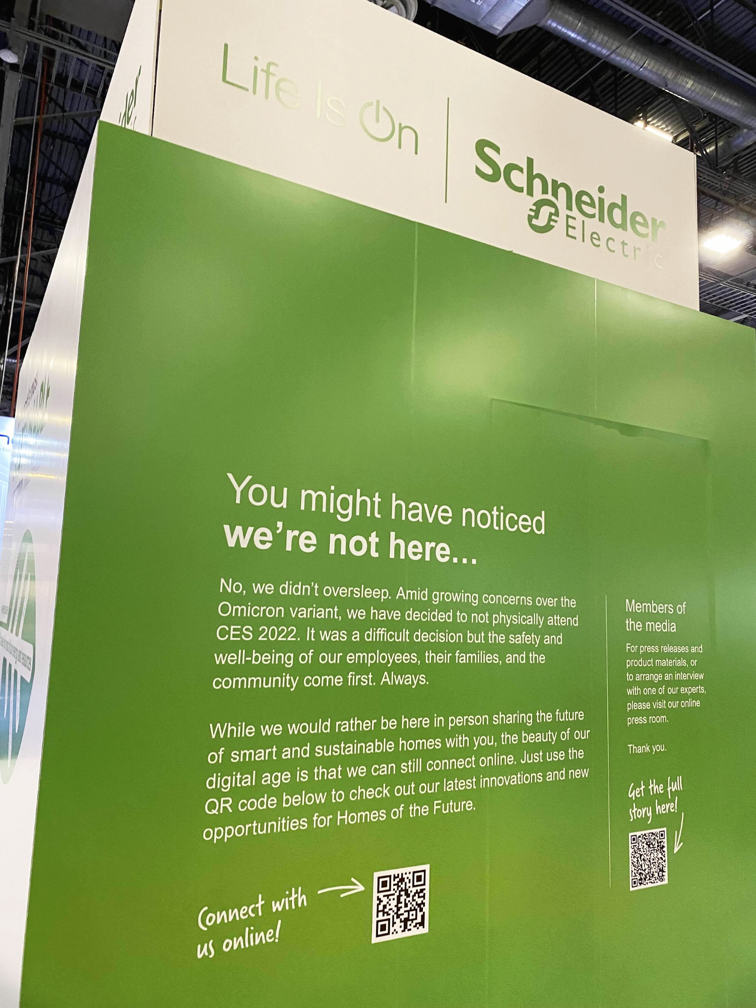 그럼에도 불구하고 오미크론 확산을 우려한 LG전자, 슈나이더 일렉트릭 등 몇몇 기업들은 다음 만남을 기약하며 QR코드를 통한 링크에서 사업 내용을 확인할 수 있도록 하기도 했어요.