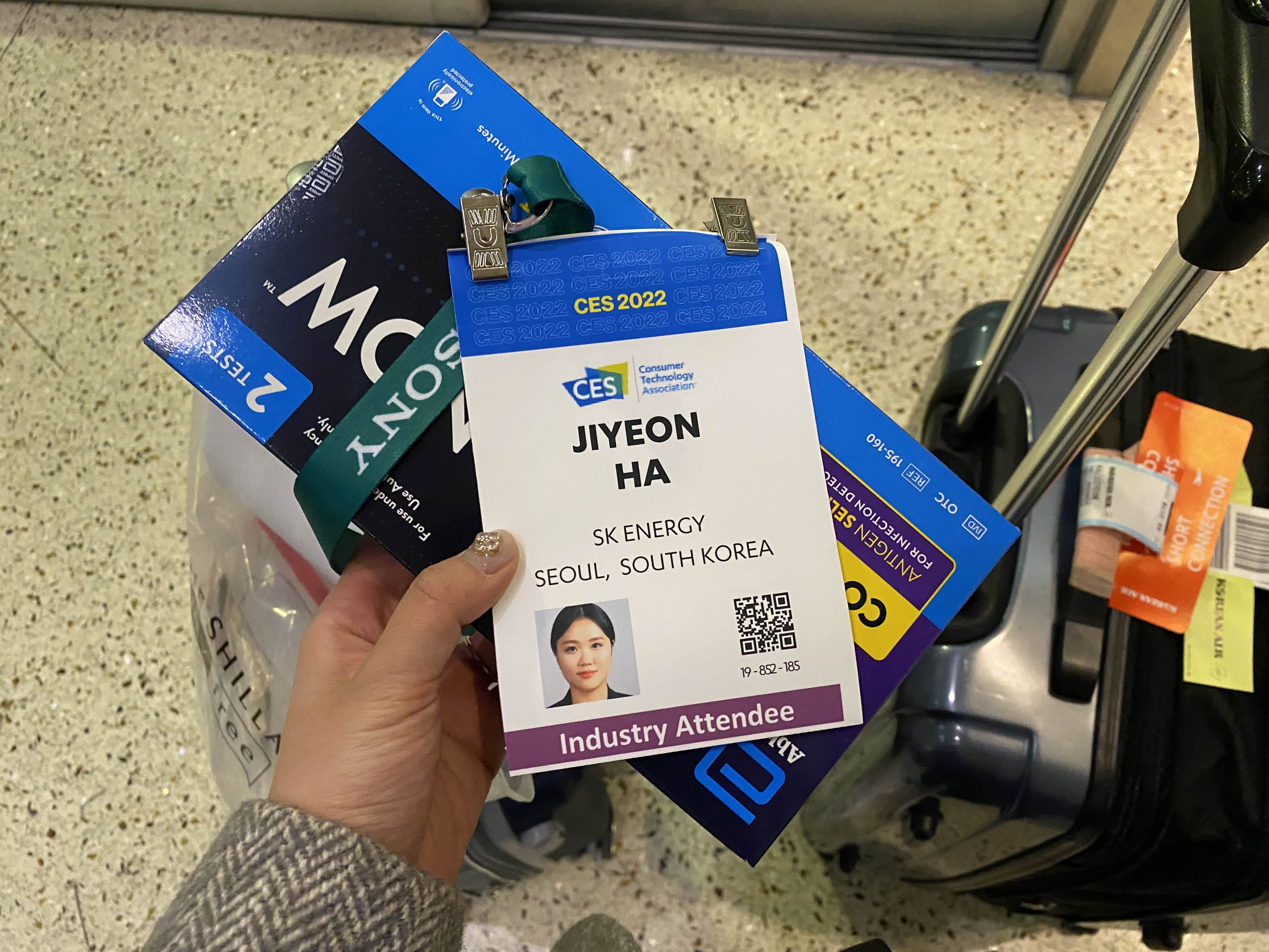 라스베가스 공항에 도착하자마자 CES 2022 배지와 자가진단키트를 함께 배부 받았어요.