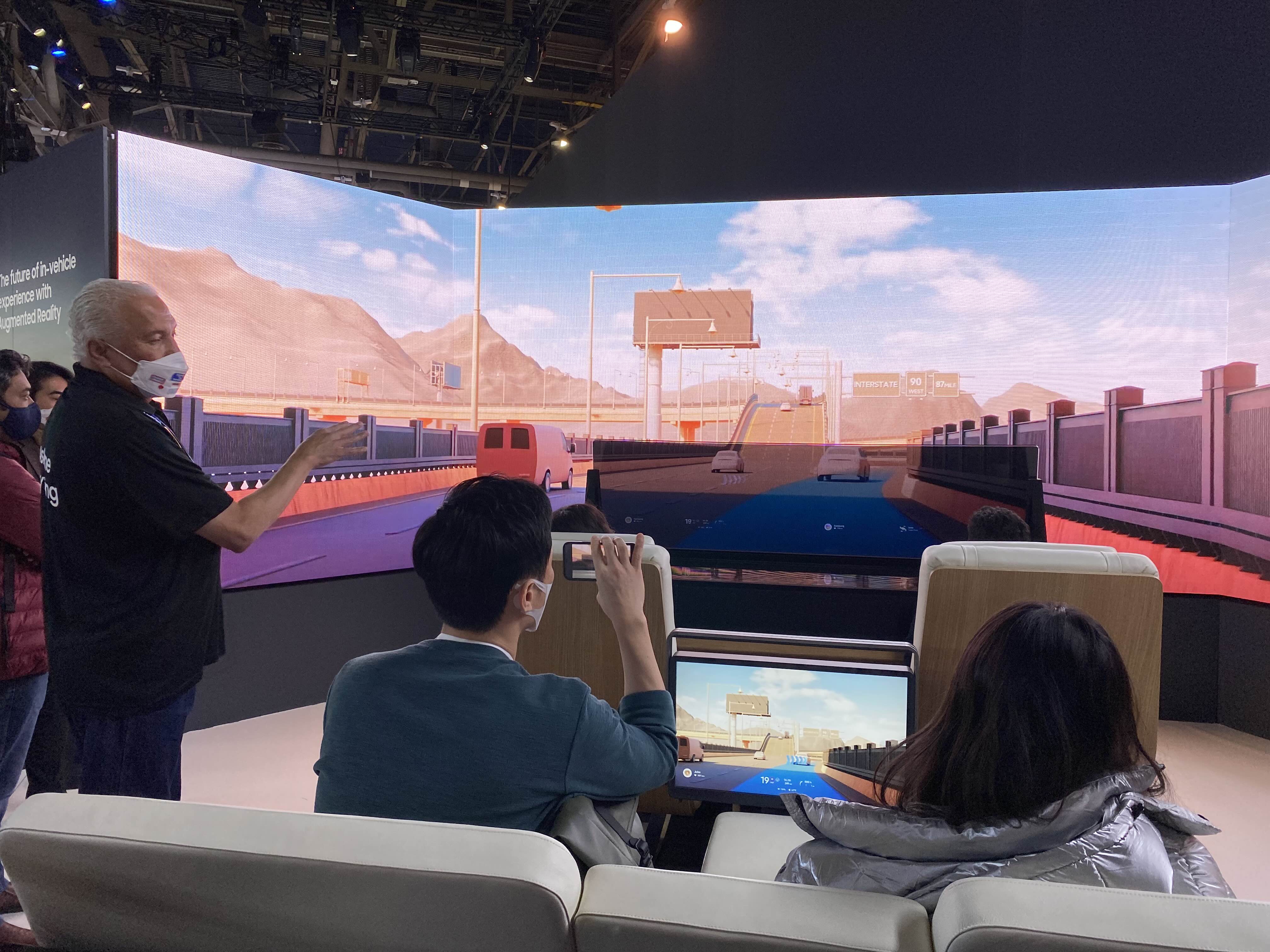 삼성전자도 드넓은 부스의 한켠에 'Futre Mobility Experience'라는 공간을 조성했습니다. 우리가 흔히 알고 있는 갤럭시 시리즈, 비스포크를 전면에 내세워 화려하게 전시관을 꾸몄지만, 무엇보다 하디터는 'Enjoyable Driving Experience with AR'을 주제로 자율주행이 상용화되었을 때 차 안에서 일어날 일에 대한 시뮬레이션을 굉장히 인상 깊게 보았습니다!