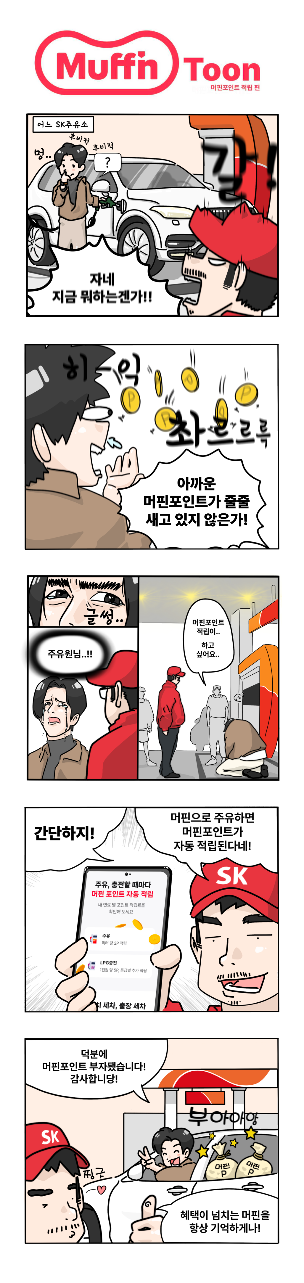 머핀툰 주인공처럼 아까운 주유 포인트 그냥 땅바닥에 버리지 마시고, 머핀 주유하고 머핀포인트 알뜰하게 모아보세요!